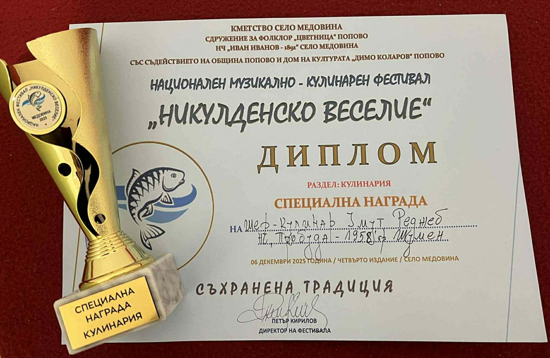 – Раздел: Кулинария – Специалната награда за Шеф Умут Реджеб