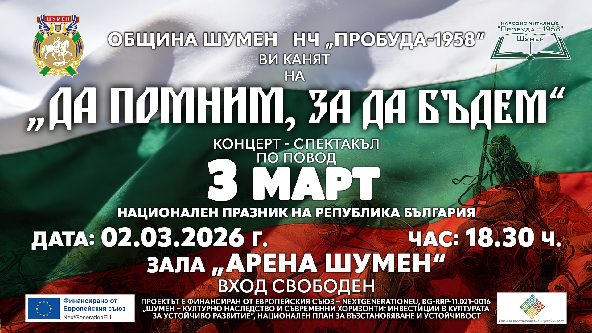 „3 март“ – тържествен концерт-спектакъл „ДА ПОМНИМ, ЗА ДА БЪДЕМ“ февруари 17, 2026 от Мая Господинова